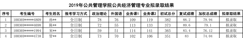 2019年对外经济贸易大学公共经济管理专业研究生拟录取名单