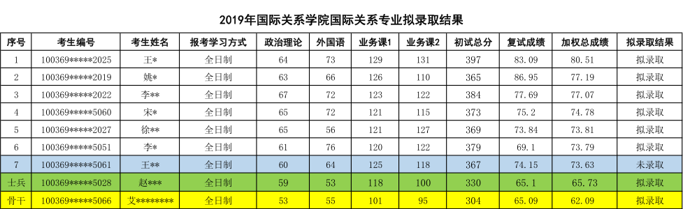 2019年对外经济贸易大学国际关系专业硕士研究生拟录取名单