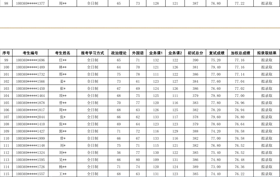 2019年对外经济贸易大学工商管理硕士(MBA全日制)专业研究生拟录取名单