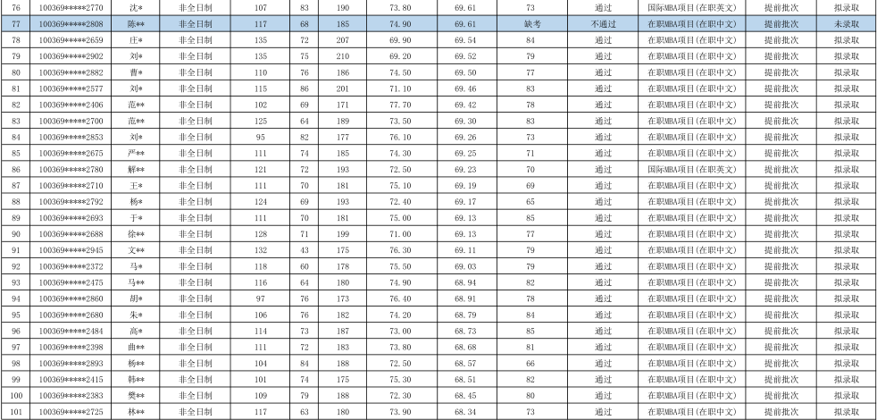 2019年对外经济贸易大学工商管理硕士(MBA全日制)专业研究生拟录取名单