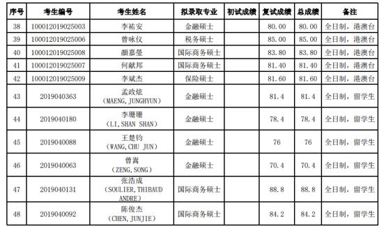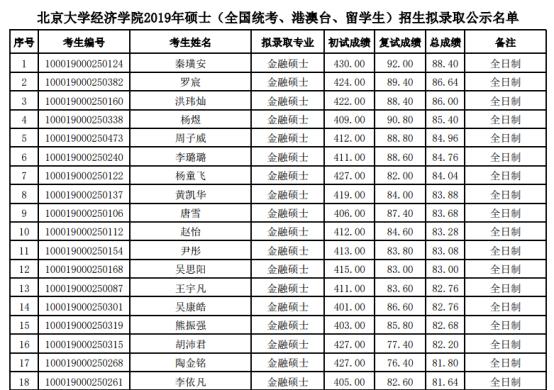 北京大学经济学院2019年硕士(全国统考、港澳台、留学生)招生拟录取公示名单