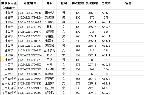 社会学院按照《南京大学2019年硕士研究生录取工作意见》认真组织包括资格审查、笔试以及面试等相关复试工作,按照学校分配的招生指标,我院在考试录取考生中确定了18名学术型硕士、20名专硕全日制(不含专项计划)以及43名专硕非全日制的拟录取名单,因专业硕士中有部分考生需进行调剂,调剂考生拟录取名单在教育部调剂系统中走完调剂程序后另行公布,请有关考生耐心等待。