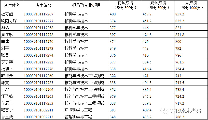 2019年清华大学核能与新能源技术研究院硕士研究生拟录取名单