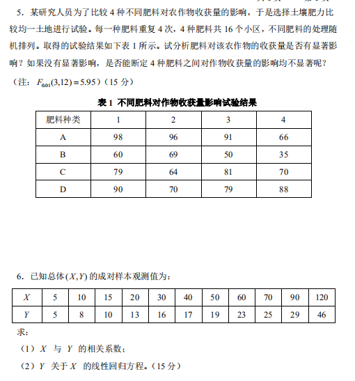 2016年中国林业科学研究院数理统计专业课考研真题