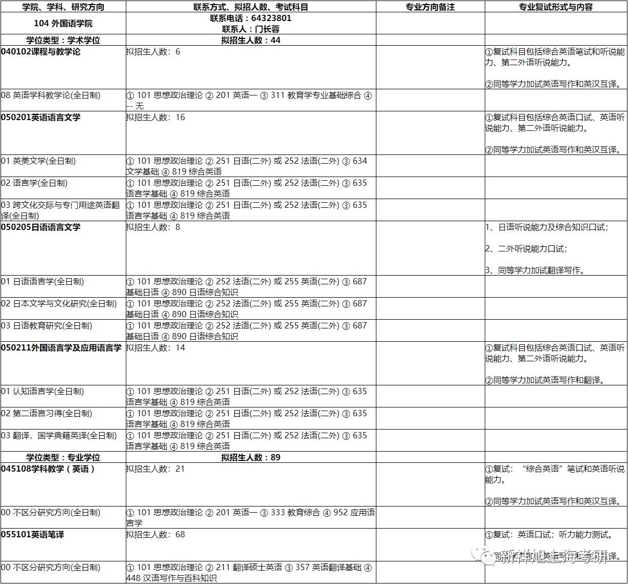 2020年上海师范大学外国语学院考研招生专业目录