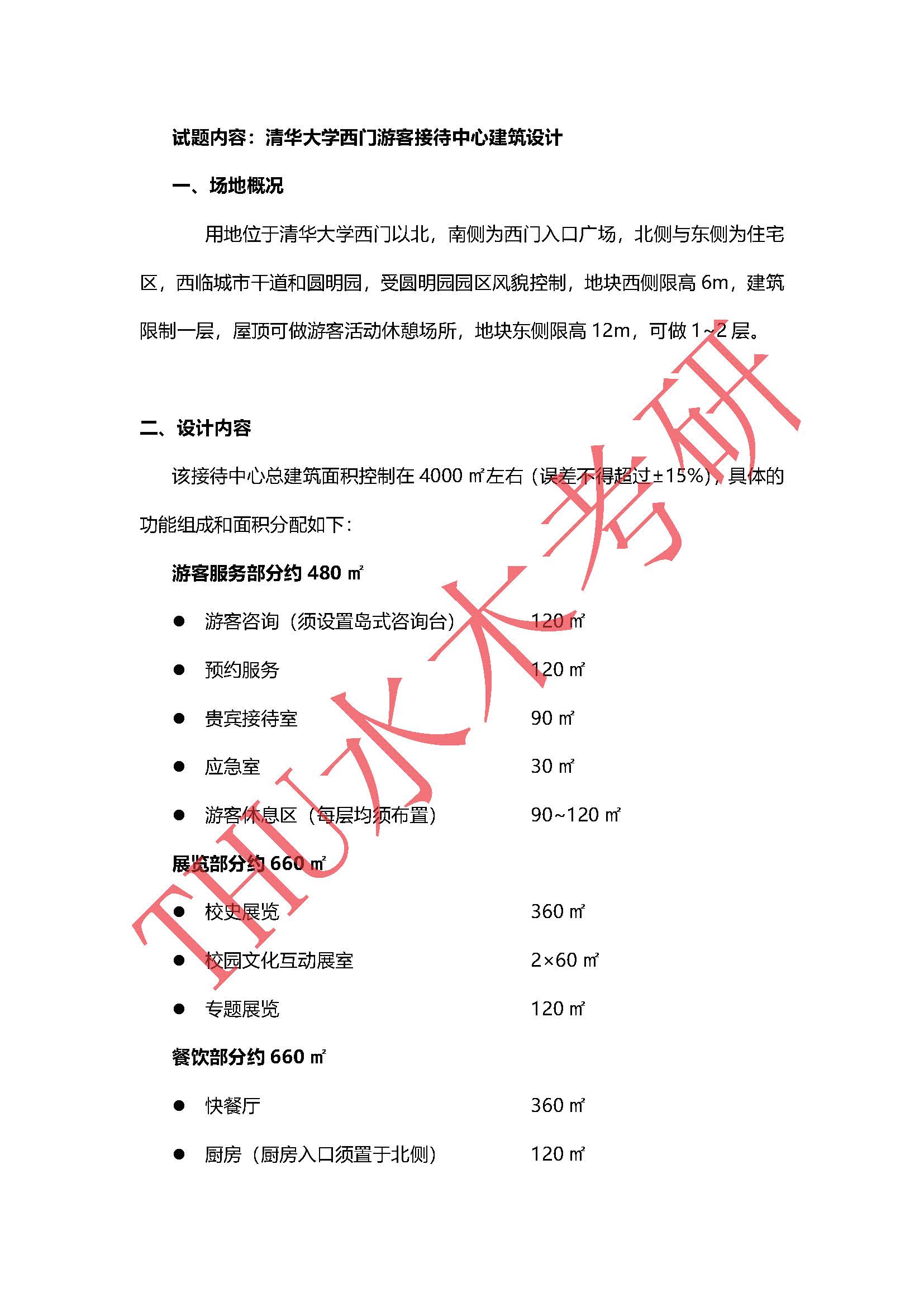 清华建筑学的专业课考试科目有建筑学基础和建筑设计,其中建筑设计是快题设计部分,需要在6个小时里面完成2张A1图纸设计及其上色,对于快题设计的熟练程度相当高。清华今年的快题考的是4000㎡的游客服务中心设计,每年的题型都相对比较稳定,但在环境的限制上每年都会有变化,灵活度也逐年提高,今年也不例外,比以往更加灵活。清华的快题相对其他学校考察得更加综合,既考察考生对场地条件的处理,还考察对功能的组织。