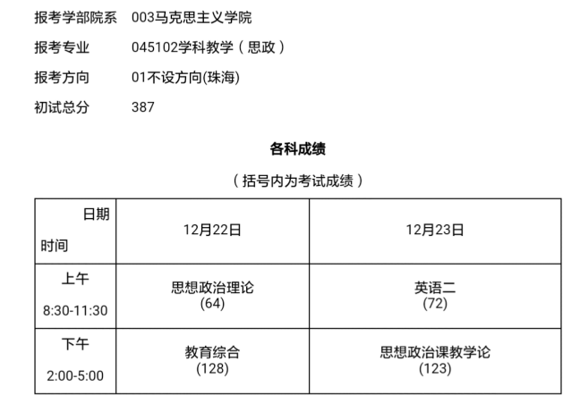 正式介绍之前,先介绍我的考研情况,我是2018年7月正式开始,不足6个月的时间,而且我后来回家一边自己复习一边跟着新祥旭的老师上网络课(真的是考验自控力的时候到了)。6个月时间维持8点起晚9点休息,后来的结果是初试387分,各科成绩如下。复试268分(满300),最后排名第7,目前拟录取。