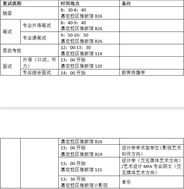 (二)复试时间、地点和流程: