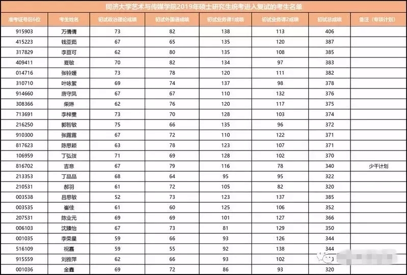 (三)2019同济大学艺术与传媒学院复试名单