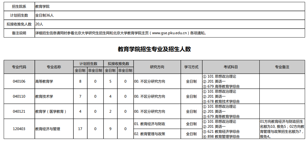 最新!2020年北京大学教育学院(校本部)研究生招生专业目录公布!