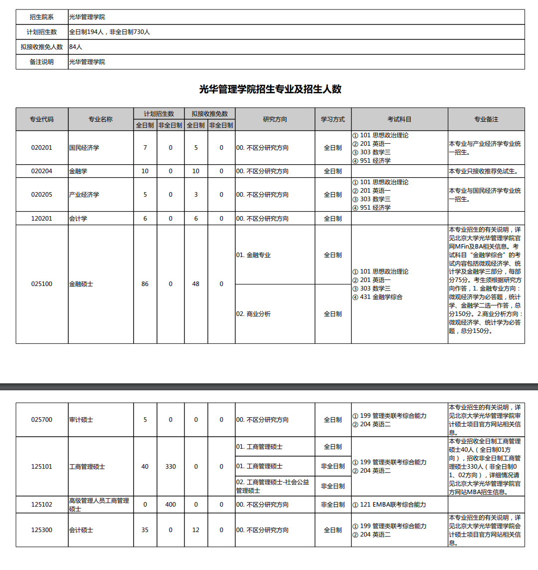 最新!2020年北京大学光华管理学院(校本部)研究生招生专业目录公布!