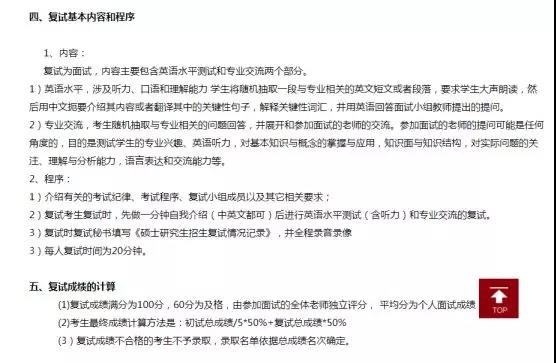 2019年复试根据1:1.2共有22人,根据四个方向进行排序。而且是根据不同方向有不同老师进行面试。2019年初试330分左右可以进入复试。复试内容相对轻松,主要包括自我介绍、口语测试(朗读随机一段英文短文)、抽取几道专业相关试题和老师交流。