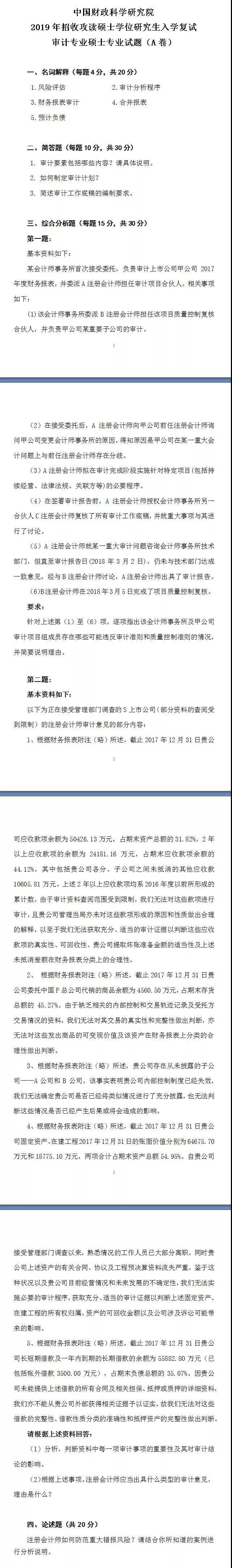 2019审计专业复试真题: