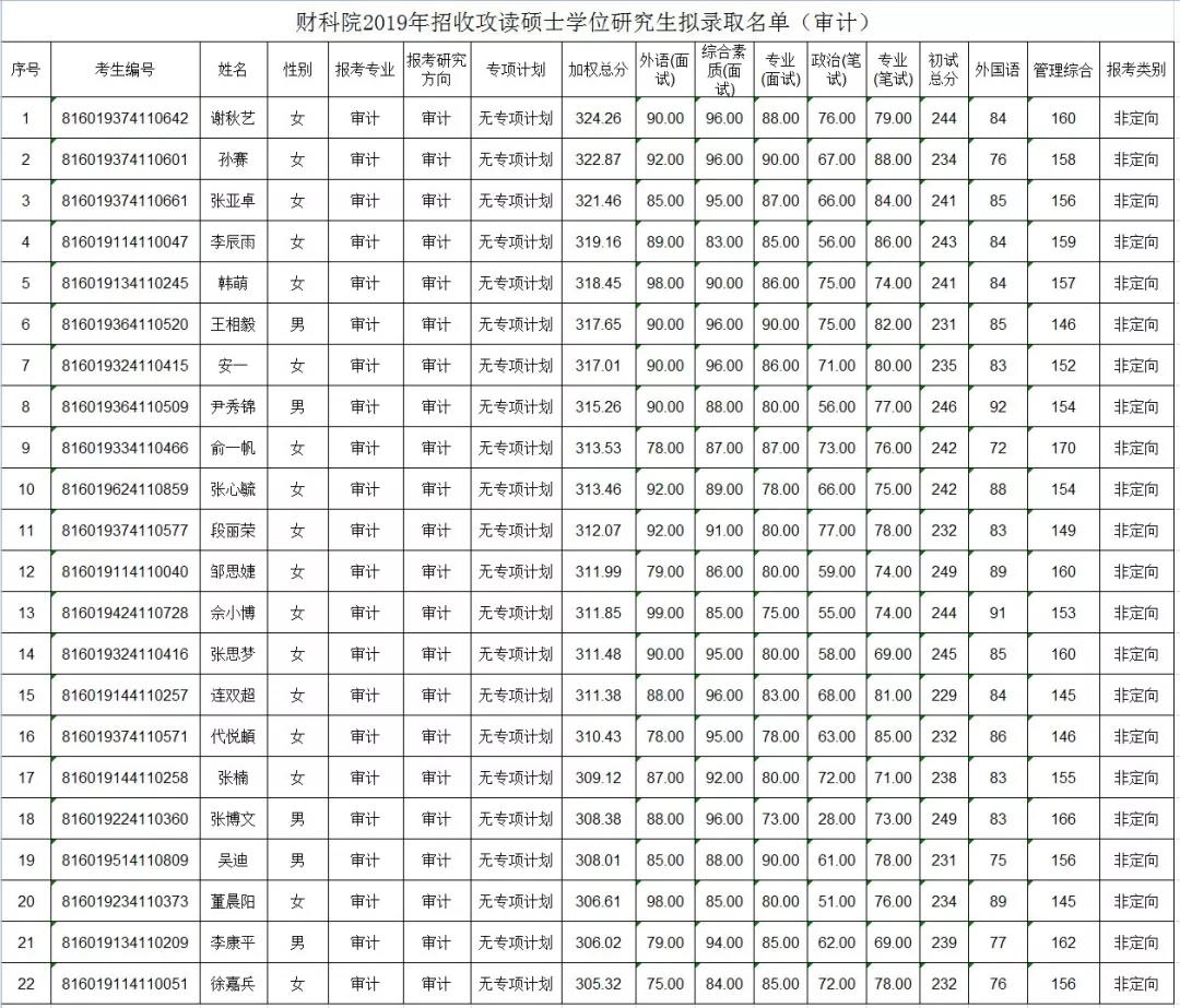 19年录取名单: