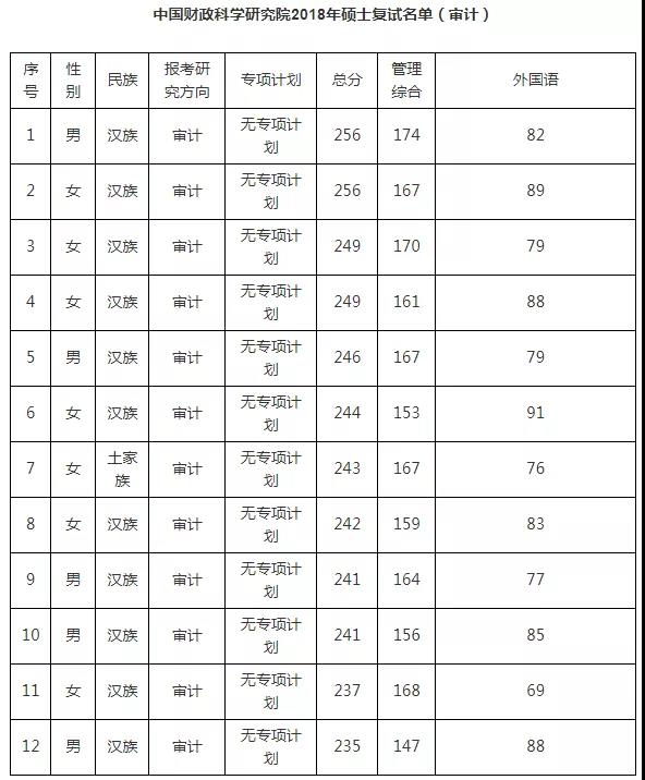 18年复试名单:
