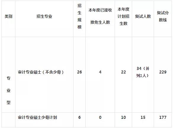 注:以上招生名额均含推荐免试生及少数民族骨干计划生,其中推免生总人数不超过招生总人数的 50%。少数民族骨干计划生名额分配:审计 6人。