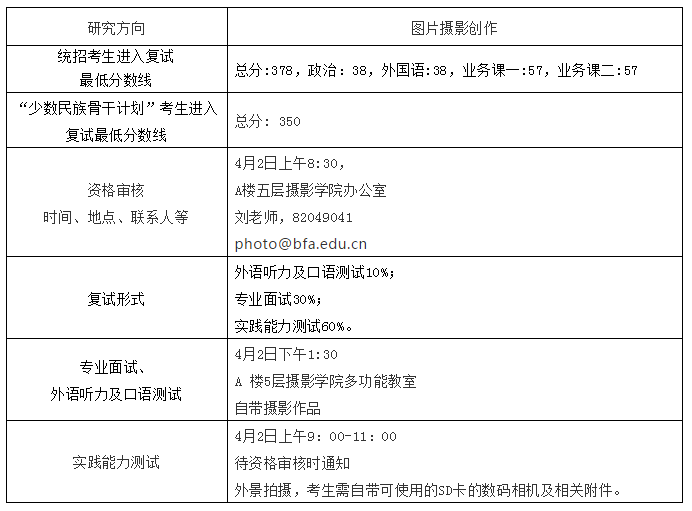 考试科目:①思想政治理论②英语二或日语或俄语③艺术基础理论④摄影理论及创作常识