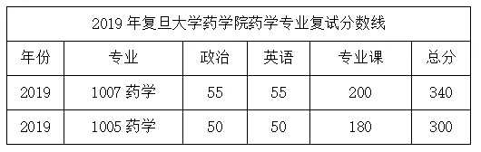 四、2019年复旦大学药学院药学专业考研复试分数线: