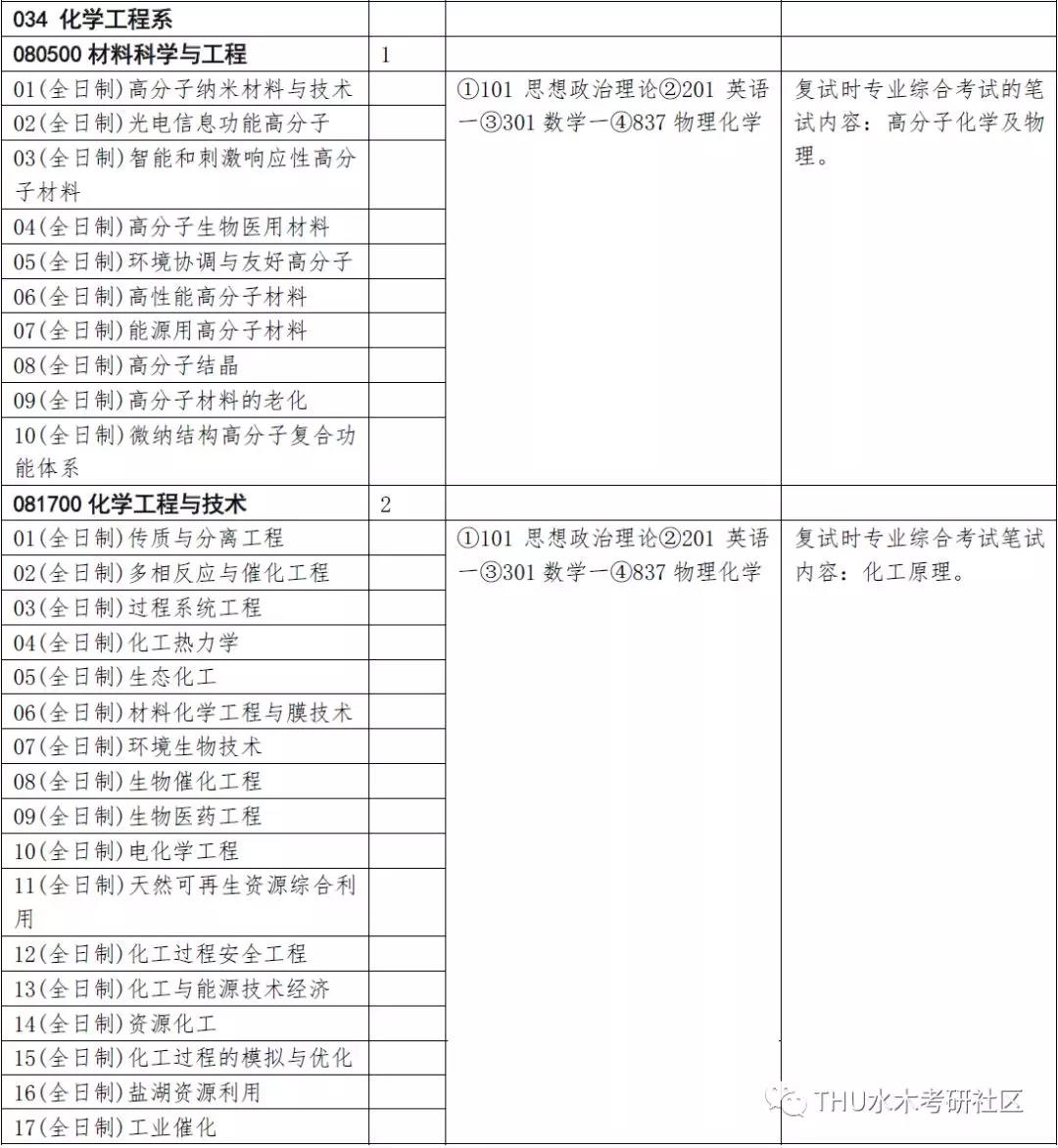清华考研辅导班:清华大学2021年化学工程系硕士研究生招生专业目录