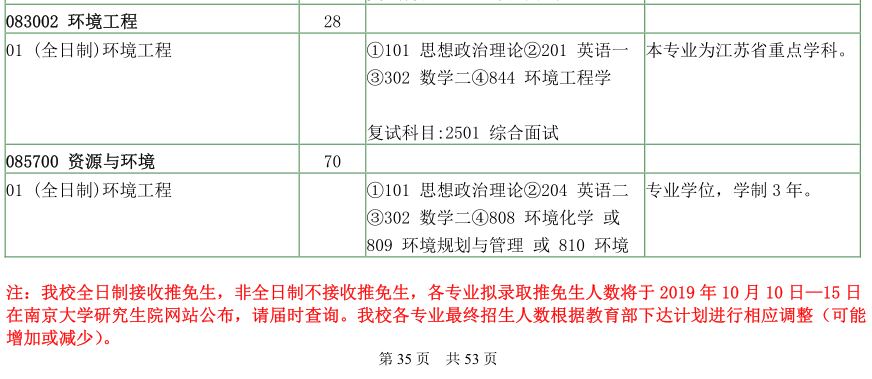 南京大学考研辅导班:南京大学环境学院2020年硕士研究生招生目录