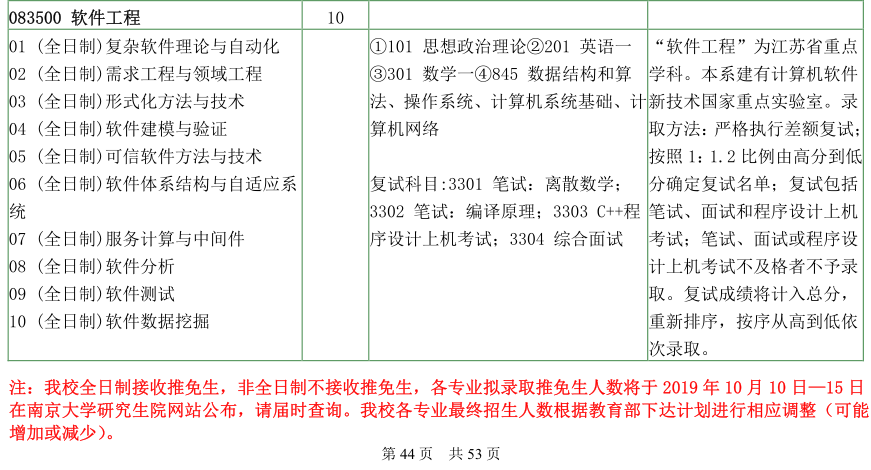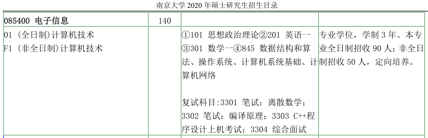 南京大学考研辅导班:南京大学计算机科学与技术系2020年硕士研究生招生目录
