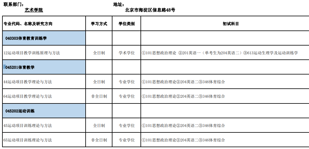 北京体育大学考研辅导班:北体艺术学院2020年考研招生目录