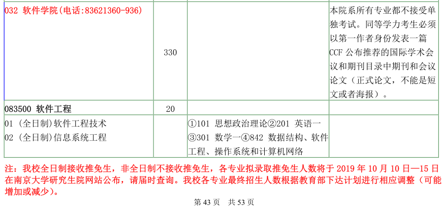 南京大学考研辅导班:南京大学软件学院2020年硕士研究生招生目录