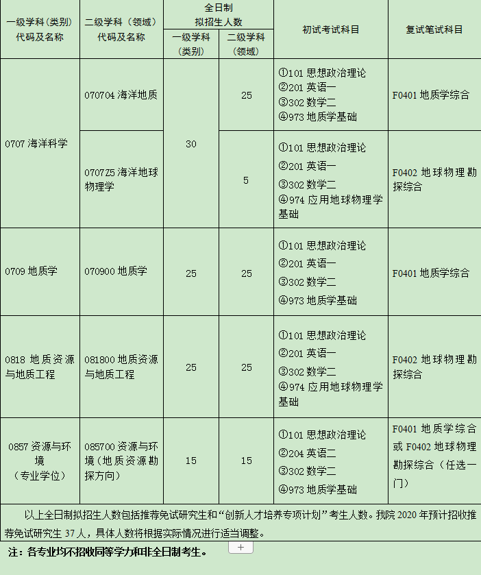 中国海洋大学考研辅导班:2020中国海洋大学海洋地球科学学院招生专业目录