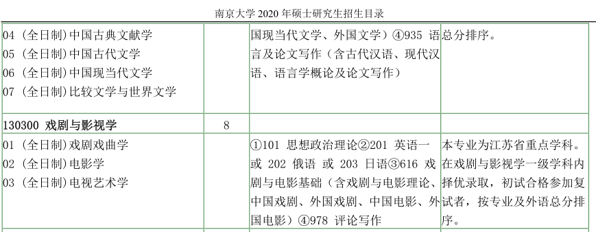 南京大学考研辅导班:南京大学文学院2020年硕士研究生招生目录