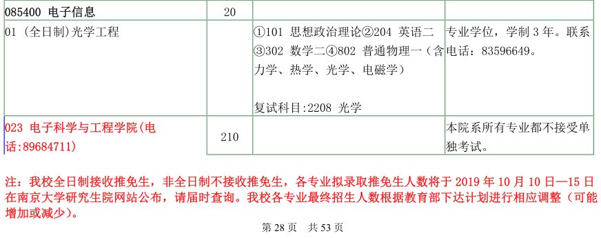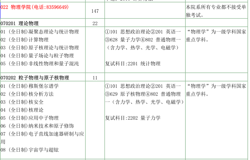 南京大学考研辅导班:南京大学物理学院2020年硕士研究生招生目录