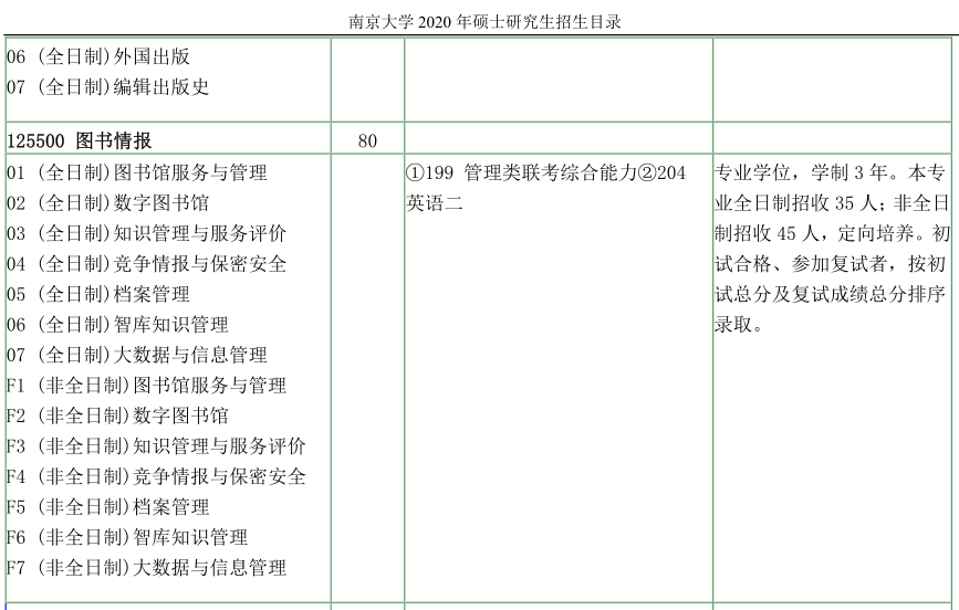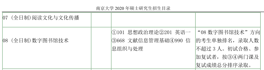 南京大学考研辅导班:南京大学信息管理学院2020年硕士研究生招生目录