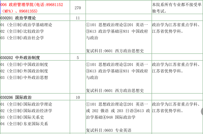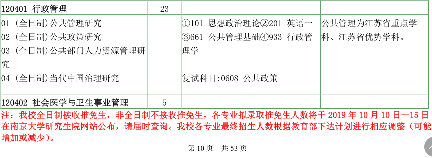 南京大学考研辅导班:南京大学政府管理学院2020年硕士研究生招生目录