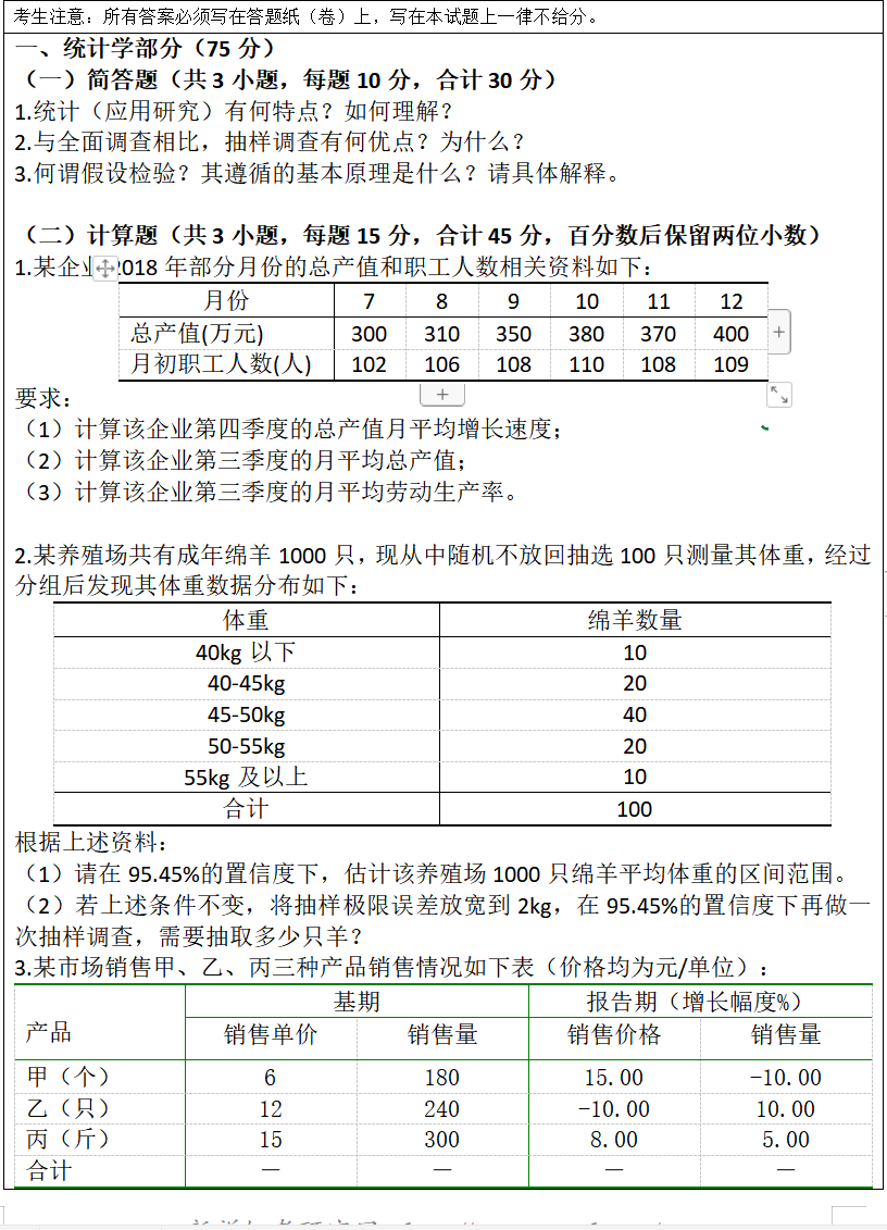 暨南大学考研辅导班:暨南大学2019年432统计学(A)真题