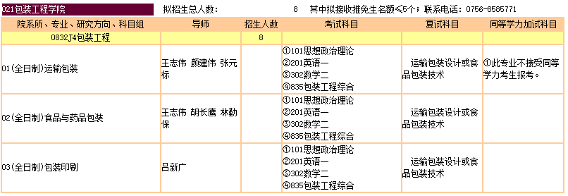 复暨南大学考研辅导班:暨南大学2020年包装工程学院硕士研究生招生目录