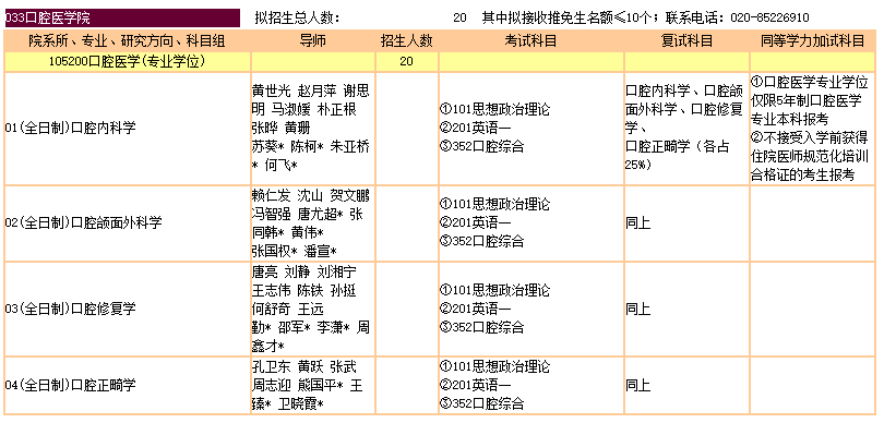 暨南大学考研辅导班:暨南大学2020年口腔医学院硕士研究生招生目录