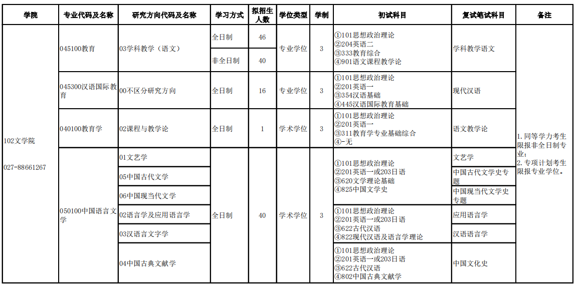 湖北大学考研辅导班:2020年硕士研究生招生文学院专业目录