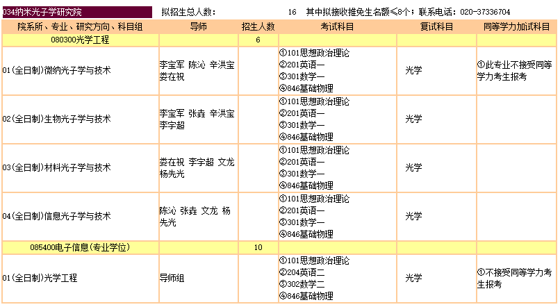 暨南大学考研辅导班:暨南大学2020年纳米光子学研究院硕士研究生招生目录