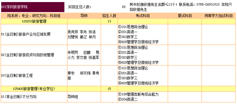 暨南大学考研辅导班:暨南大学2020年深圳旅游学院硕士研究生招生目录