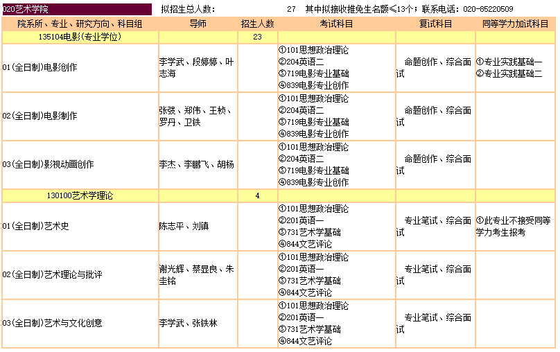 暨南大学考研辅导班:暨南大学2020年艺术学院硕士研究生招生目录