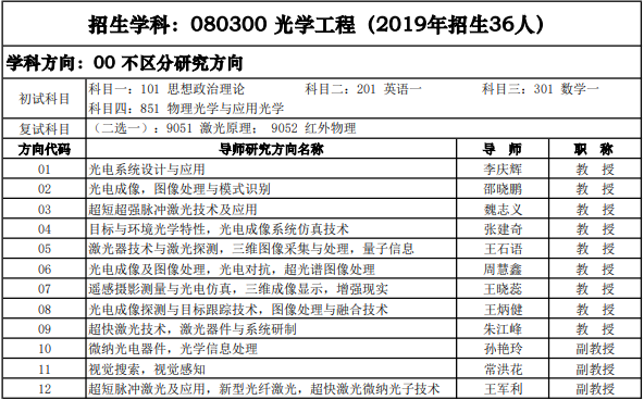 西安电子科技大学考研辅导班:2020西安电子科技大学光学工程招生专业目录
