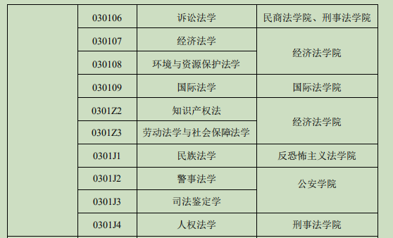 西北政法大学考研辅导班:2020年西北政法大学法学专业招生目录