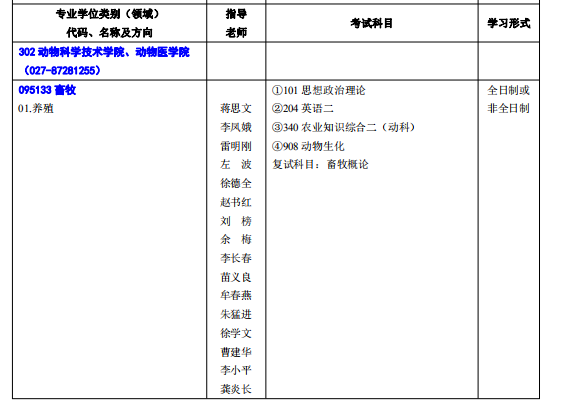华中农业大学考研辅导班:2020 年华中农业大学硕士研究生招生动物科学技术学院、动物医学院专业目录