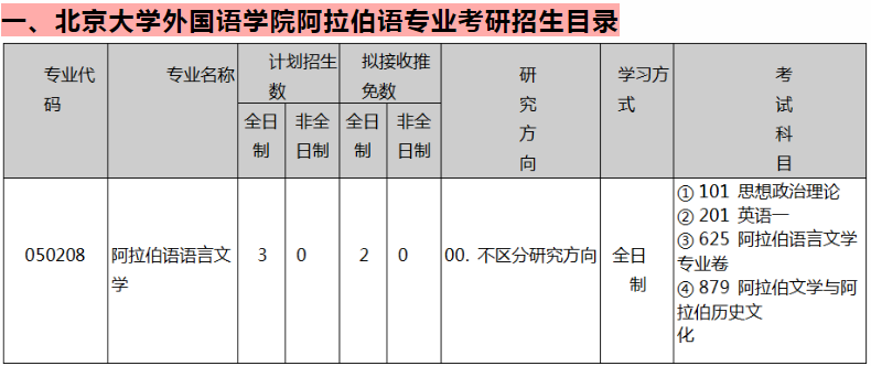 一、北京大学外国语学院阿拉伯语专业考研招生目录