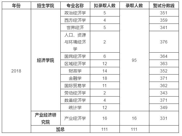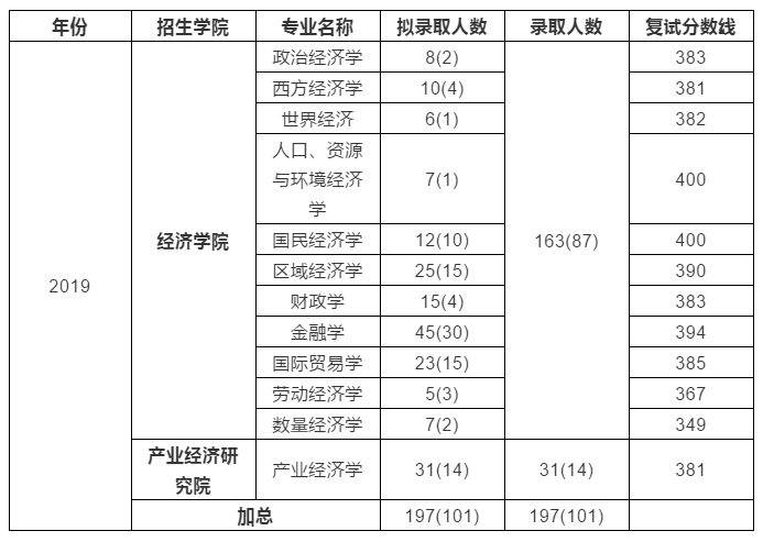 从以上数据可以看出,除个别专业(数量经济学)的复试分数线在350左右,其他专业的复试分数线都在370、380,国民经济学甚至高达400多分(最高分不是出现在金融学哦),可见竞争还是非常激烈的。