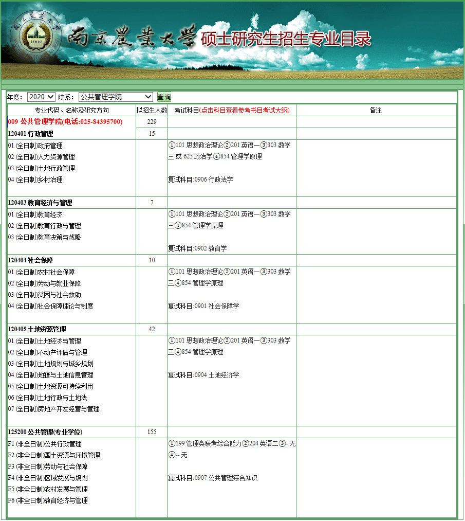 南农考研辅导班:2020年南京农业大学公共管理学院考研专业目录