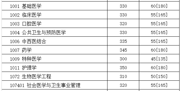 ① 101 思想政治理论② 201 英语一③ 709 医学综合