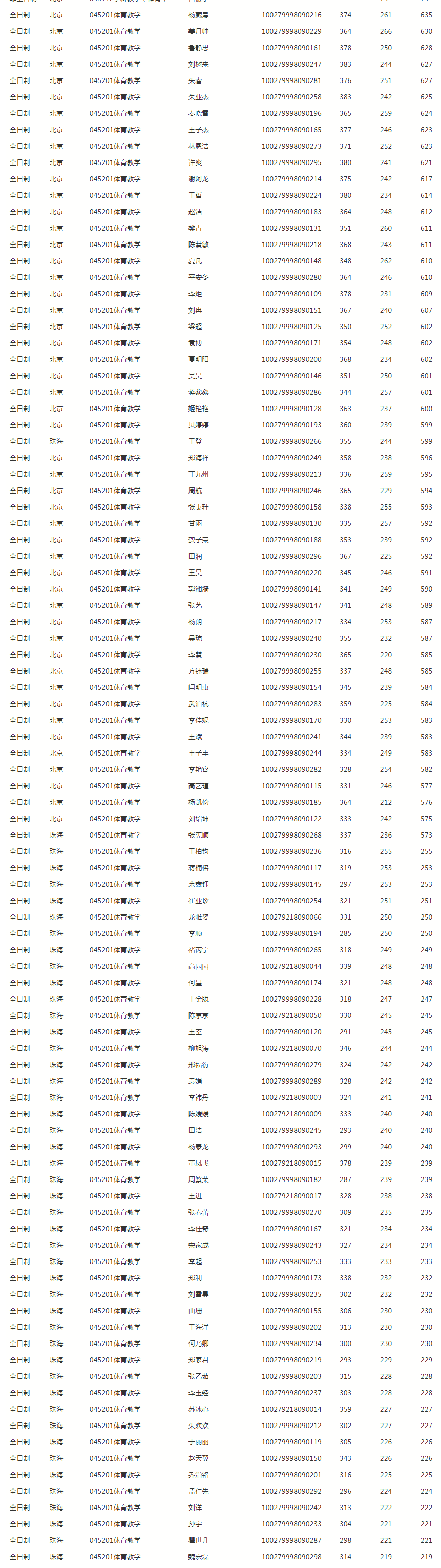 复试比例: 培养地点在北京的全日制体育硕士:198% 培养地点在珠海的全日制体育硕士:4% |