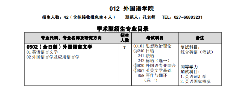 武科大考研辅导班:2020年武汉科技大学外国语学院考研专业目录