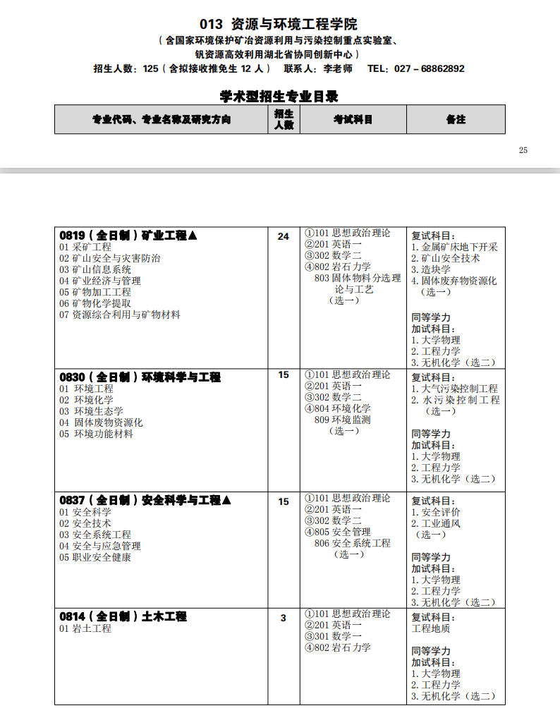 武科大考研辅导班:2020年武汉科技大学资源与环境工程学院考研专业目录