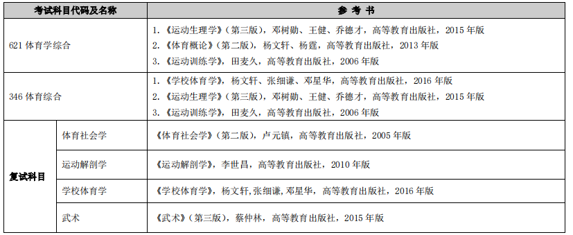 湖北大学考研辅导班:2020 年湖北大学硕士研究生招生考试自命题科目参考书目 ( 体育学院)